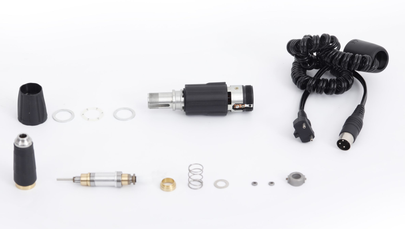 Strong Micro-motor system can handle a wide range of light- duty bench applications. It provides most Affordable solution for grinding, drilling, polishing or bright Cutting. Well balanced handpiece runs smoothly up to 35000 rpm.